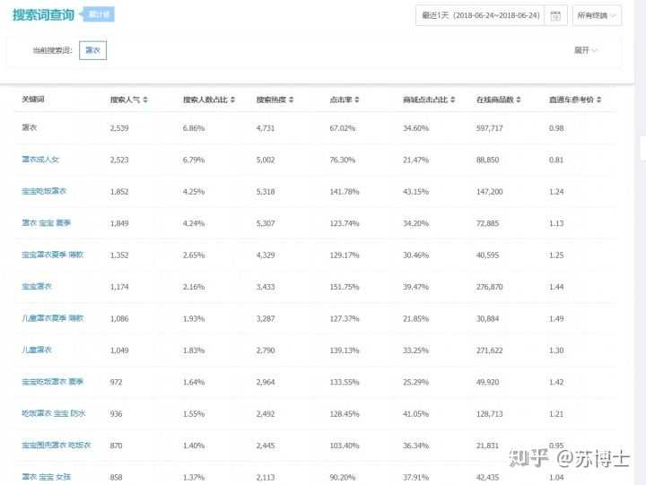 现在的市场,就是谁能抓住消费者的需求,谁就是赢家,那么怎么挖掘有潜力的市场呢?就需要通过市场分析的数据来确定,因为数据是最客观的,比如我想做一款罩衣,在生意参谋中输入罩衣这个词,就能看见下面的数据 。