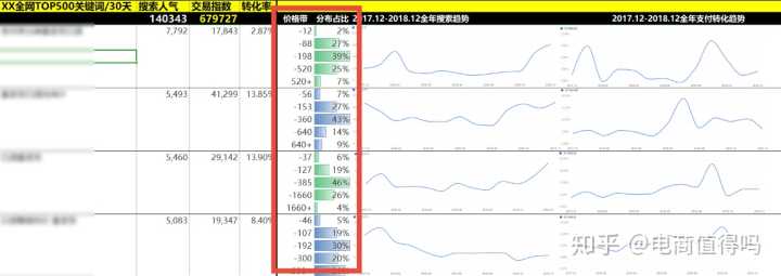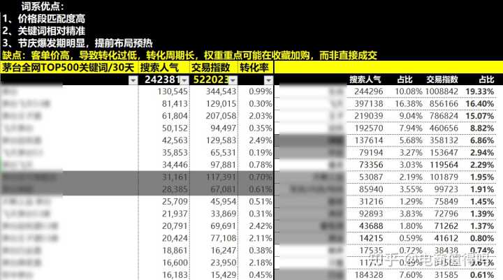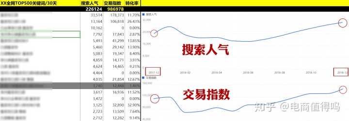 主要看三个数据:搜索人气、在线商品数、商城点击占比,
