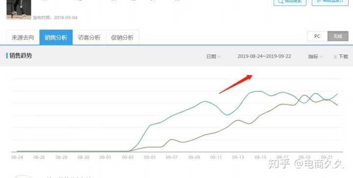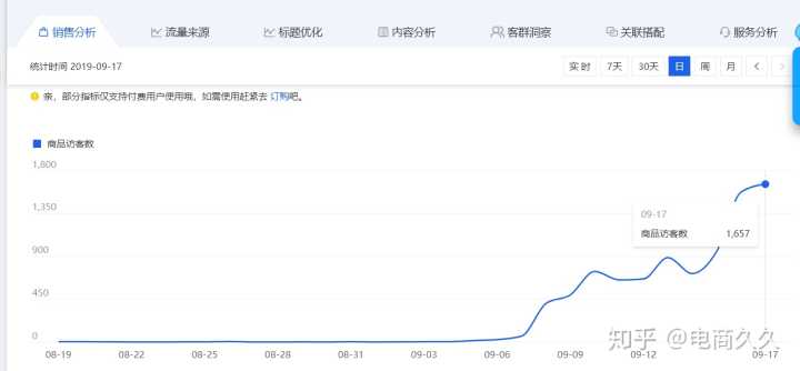 拿电风扇举例,季节性产品,流量解析这在时间上选取1年的,如上图你不难看出它的淡旺季时间,做的话,4月中旬就是你产品的切入点,然后7月底就是产品的衰退期。在衰退期到来之前你就得提前找好要替换的产品,去提前布局为打造下一个爆款做准备。这么操作你的店才能一直有爆款存在,流量才不会大起大落。