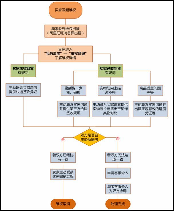 收到买家维权后,卖家如何有效处理? 大文 四月 6, 2016 交易管理 0 条评论 1988 围观 收到买家维权后,我该怎么办?如何协商会有更好的效果? 卖家维权助手帮助您。 卖家必学:如何避免出现交易纠纷,若出现交易纠纷我该怎么办? 卖家必读:收到维权未解决自主解决会给我带来什么影响? 卖家处理维权流程示意图: