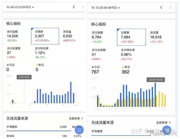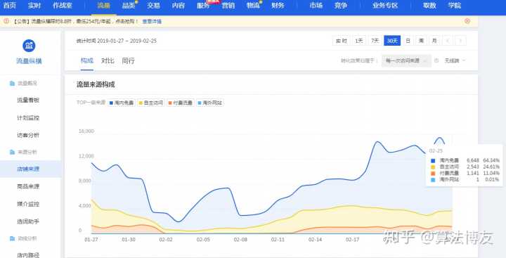 第二:一般商家对比肯定是下面这张图来评比自己店铺的一个流量情况,但是不可忽视的是淘内免费的流量,首先