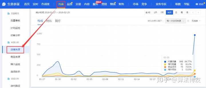 打开卖家中心–生意参谋–流量纵横–找到店铺来源–蓝色线段,查看店铺付费流量是否高于免费流量