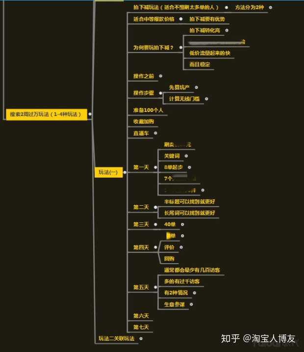 给人群快速打标之后我根据做竞品数据分析计算出自己宝贝需要多少单量能超过竞品,然后布局每天的单量。由于空间有限,我整理成如下的导图: