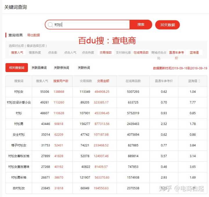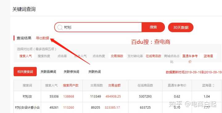 第二步:利用查电商中“关键词查询”模块查询核心词,选出衍生词