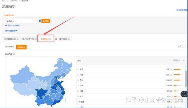 在查询结果页面还可以查看该关键词在全国各地的搜索情况,以及站内站外,无线和pc端的占比等详细数据,这个有什么用呢?如果你的产品地域性特别强或者想增加某个端口的流量,这边的数据是很有参考价值的。