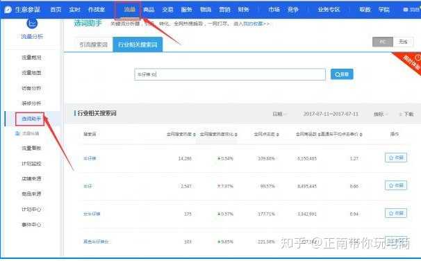 14. 生意参谋里的流量纵横和竞争分析还有品类罗盘都有关键词相关的数据