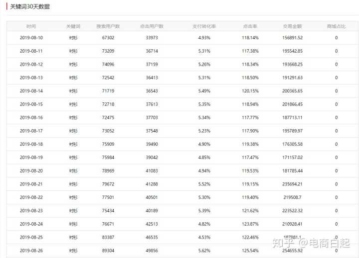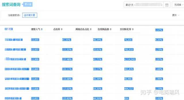 需要以行业与店铺的人群特点为依据选择关键词。可以在生意参谋的搜索人群中,把搜索词和对比词放一起,看消费人群的属性画像:搜索人气、人数占比、点击人气和占比、点击率、转化率等。