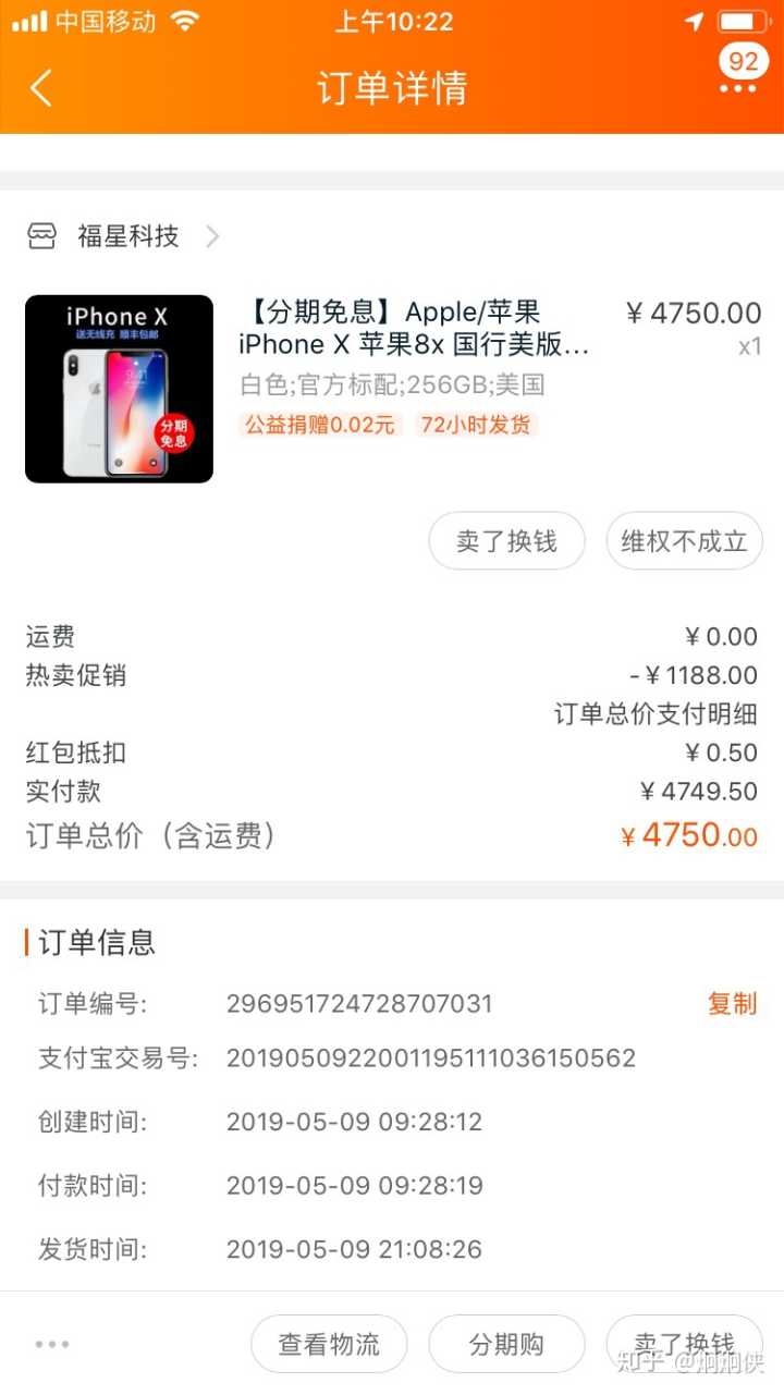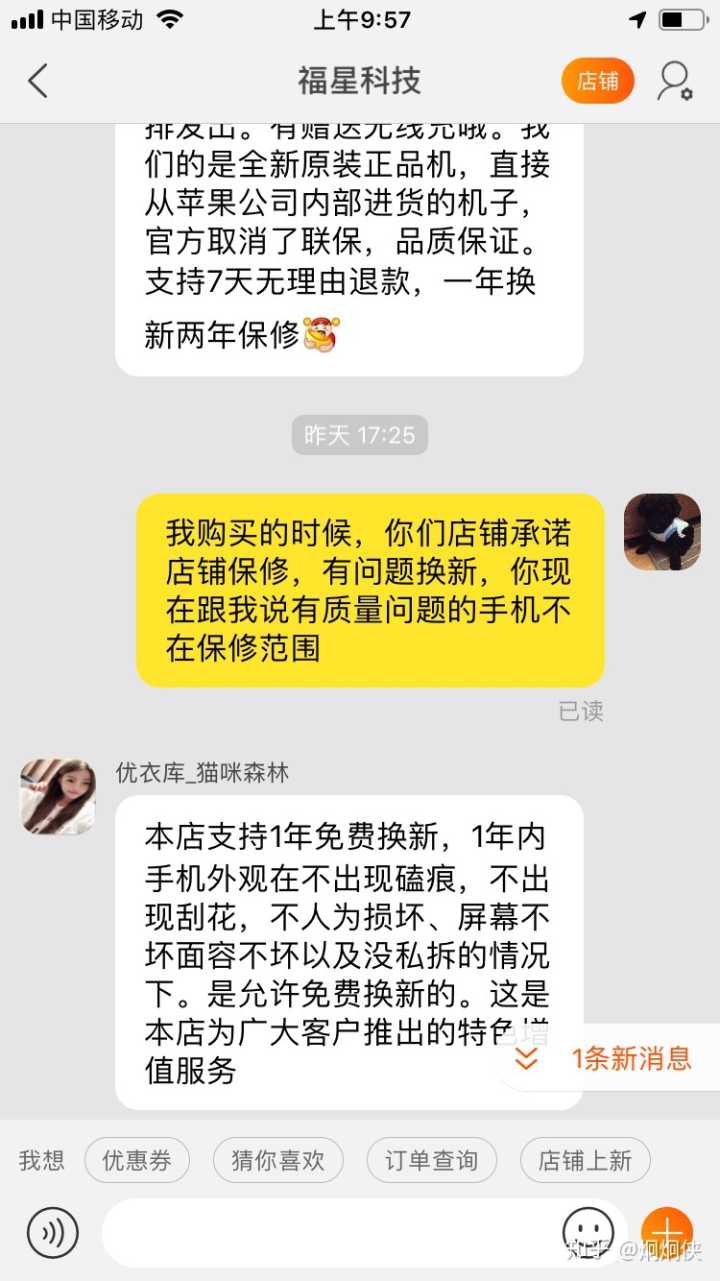 事情的起因是2019年5月11号我从淘宝网福星科技的一个当时销量2000+的购物链接购买了一部是,苹果X美版三网通白色256G全新零售机说起,当时购买时卖家承诺全新零售机,两年店铺质保,一年换新两年保修,我就购买了