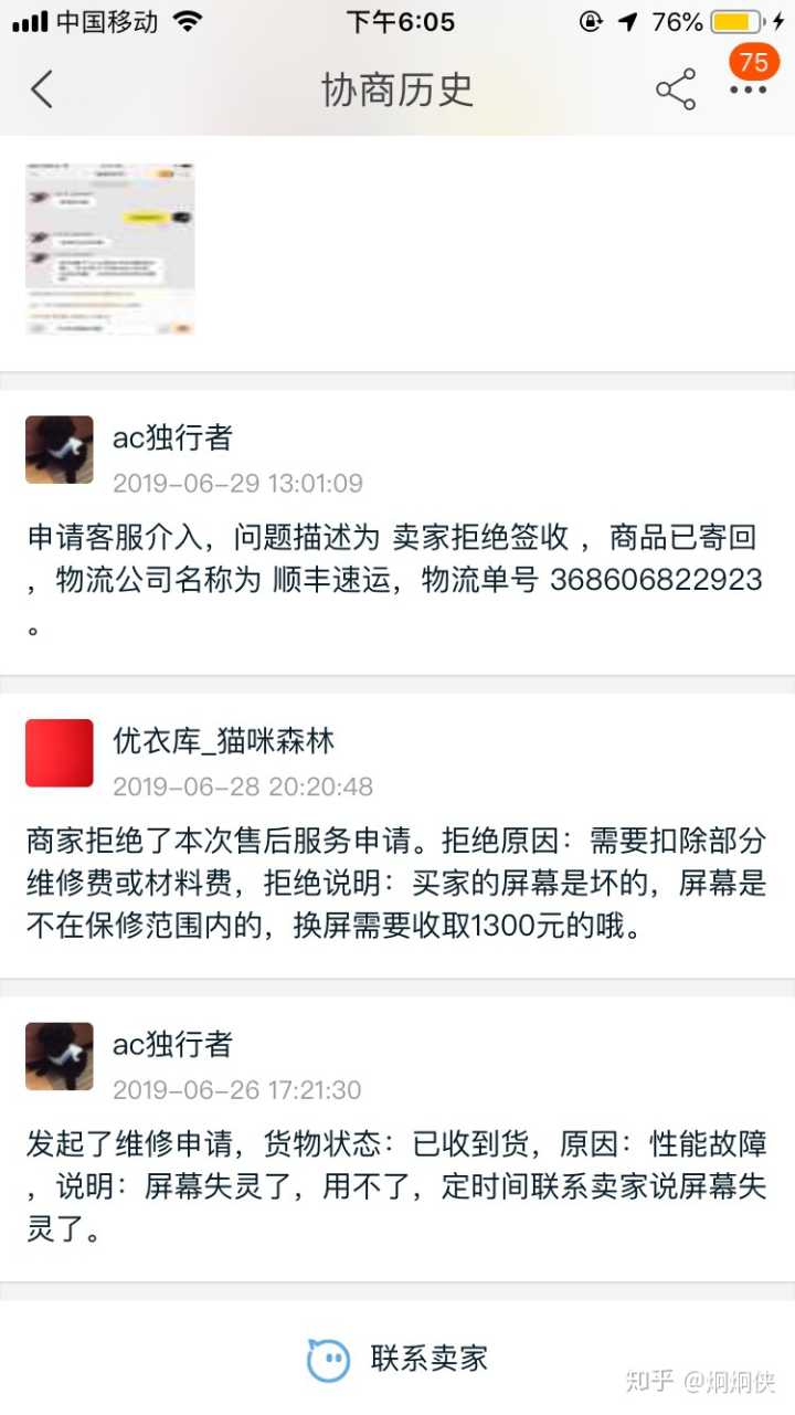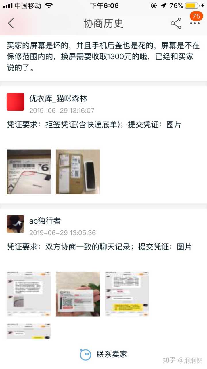 手机我没有拆过,卖家单方面说手机屏幕坏了,1300换屏幕,至此我的悲剧维权之路开始了
