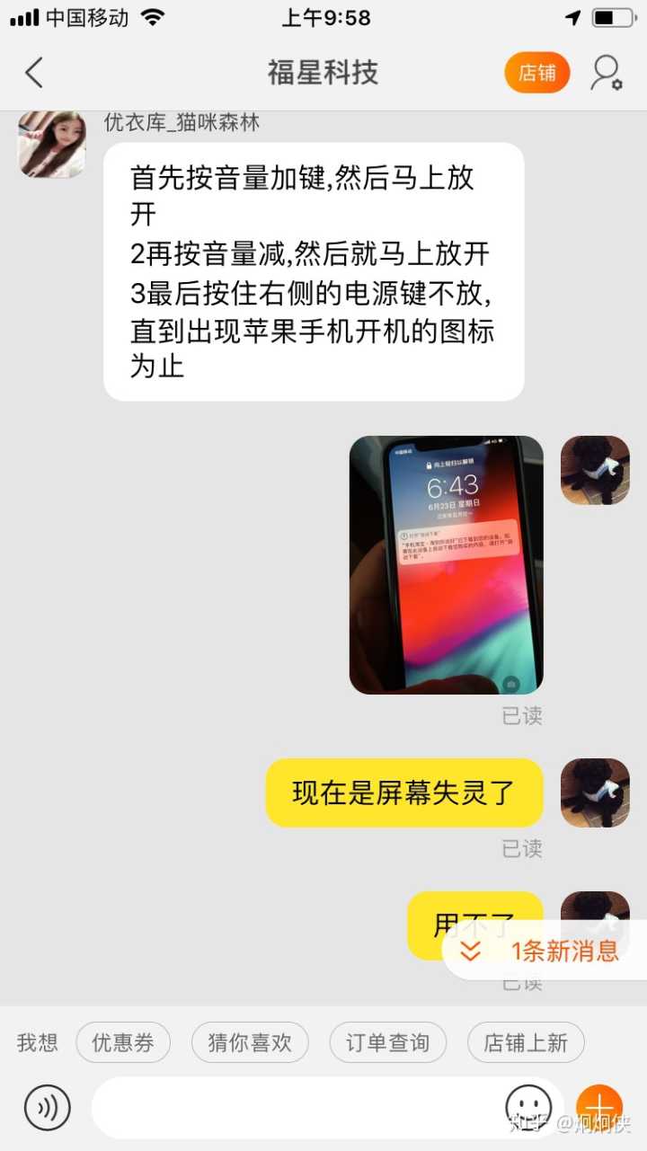 6月23日,我联系福星科技说手机失灵,屏幕触屏不行了