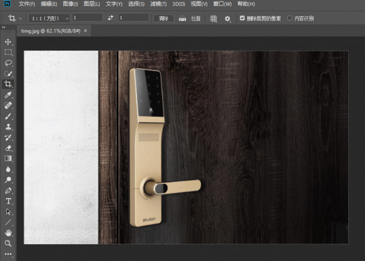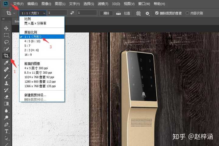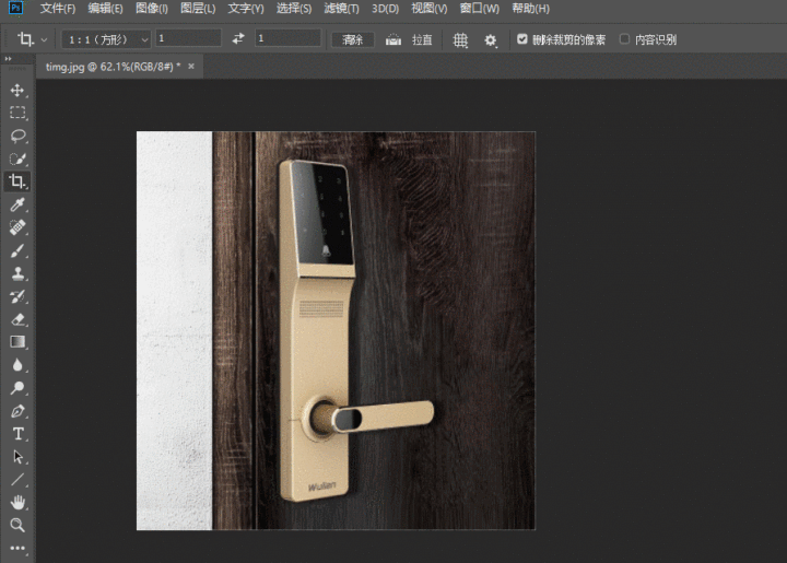 2.选择裁切工具(快捷键英文状态下“C”),并且选择比例菜单下的 【1:1方形】