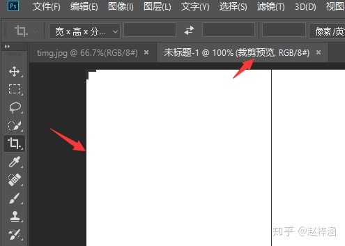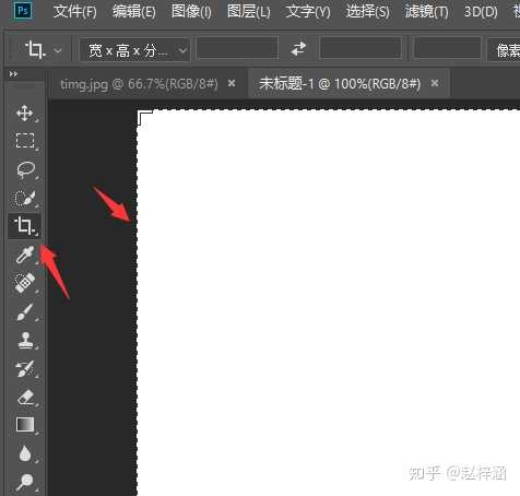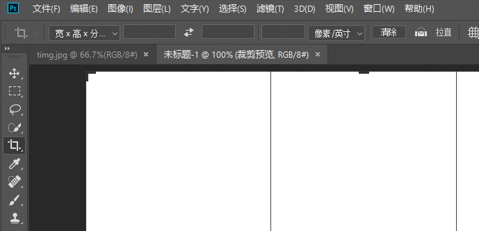 2.点击一下裁切工具,或者(英文状态下快捷键”C”),画布出现虚线,