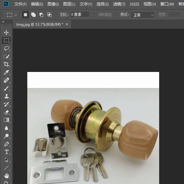 用矩形工具框选出,白色的区域和图片纯色背景区域(注意不要框中物体)