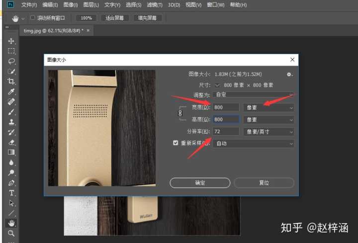 4.按快捷键 alt+i,属性栏出现800X800 72像素