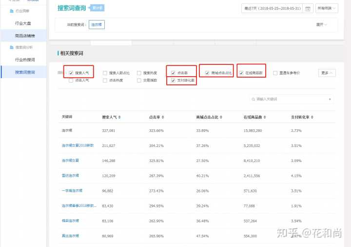②关键词竞争少的(包括在线商品数,商城点击占比)