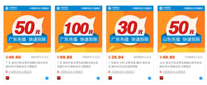 第一名是移动充值卡