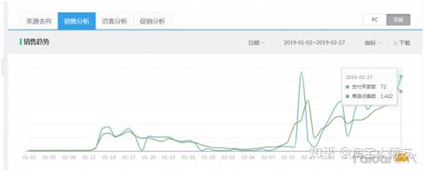 说明:上图中2月12号,店铺有个活动,所以这天的访客基本都是活动流量。