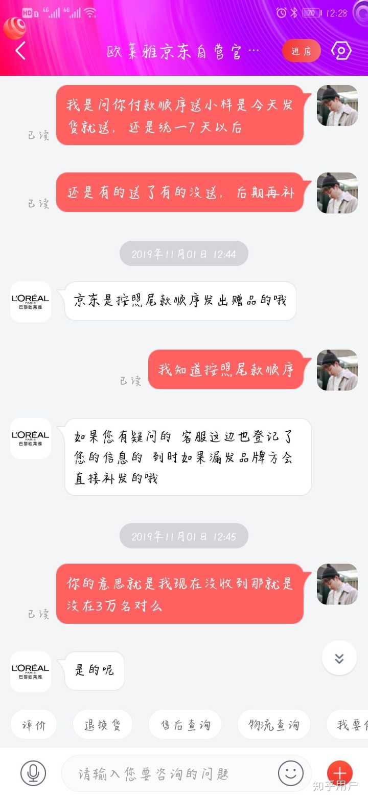 给自己买眼霜,又是预售又是1号付尾款,收到之后没有收到赠品(尾款前一万送4只小样,3万送2只),然后问客服。