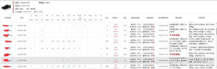 第二,假货店铺商品的尺码都很全,而且价格都统一。而正品大部分爆款商品,鞋服的尺码有些会有缺少,造成同款商品,不同尺码的价格不一致。