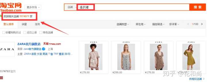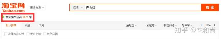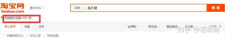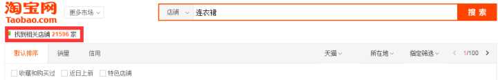 可以直观的看到,截止到2018年8月21日,淘宝上售卖连衣裙的店铺共计1174071家。
