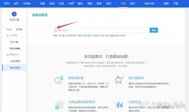 2.生意参谋来进行选词,这里我们可以再这个界面利用付费的生意参谋进行选词,这里标准版和专业版都可以搜词,一般来说不是很必要,订购一个标准版就足够了