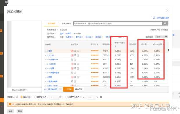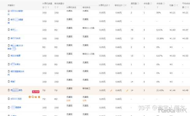 其中这两组数据,一个是ppc另一个是转化率,女装因为这种0.5%左右的超低转化率存在,造就了我们平均ppc也是比较低,平均水平也是5毛左右。所以我们要做起来一个爆款之前,至少我们要把ppc控制到5毛以内。