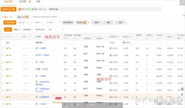 这时候我们选词一定要选相关性高的长尾精准词,选一批进行培养,我们出价可以比上面侧款计划高一点,可以定个8毛或者1块,然后把溢价也可以选上,设置个50%左右的溢价,大概做到只要每天能刚好花完这两三百块钱即可