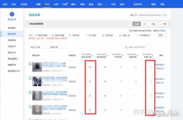 1.根据产品流量和收藏量来选,我们可以打开生意参谋,因为我们昨天侧款了,所以今天的流量肯定还是会有一些的,因为我们侧款是同样的价格同样的计划 同样的词量,所以这样测试出来,访客量或者收藏量多的款式基本都是挺靠谱的。(下面案例图是一个新接的女装店铺侧款数据)
