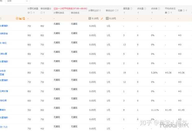 看到没,上面的图我差不多的词同一款产品,排名前三的点击率反而才4%,我排名十几位的点击率反而稳定在8%和9%,女人的这种购物心理造就了我们前期做女装侧款不需要只选十个词出高价冲点击,因为没必要,女装的流量没有好坏之分,只要你款式好,说不定排在后面点击率也会不错的。