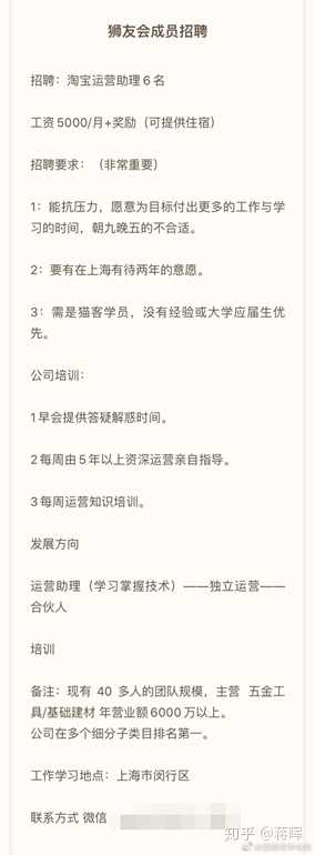 这是一家年营业额超1亿的互联网企业,发展前景不错,行业竞争小,稳定。有培训机制,晋升渠道明确。给到的薪资是5000+奖励,可能有人说在上海这个工资不高,要知道是在提供住宿的条件下而且是运营助理。。。。。