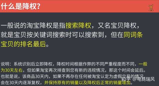 注意,店铺不存在降权的情况,只有处罚扣分达到节点会屏蔽店铺。店铺虚假交易行为过于严重的,给予卖家7到90天全店铺商品降权。注意,店铺不存在降权的情况,只有处罚扣分达到节点会屏蔽店铺。店铺虚假交易行为过于严重的,给予卖家7到90天全店铺商品降权。