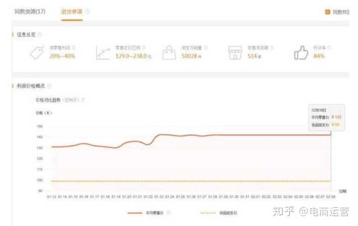 我们选择一个产品,点击一下淘货源插件的进货参谋功能可以看到这款产品在淘宝店铺的销售情况。