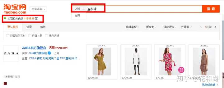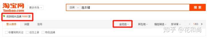 可以直观的看到,截止到2018年8月15日,淘宝上售卖 连衣裙的店铺共计1168826家。