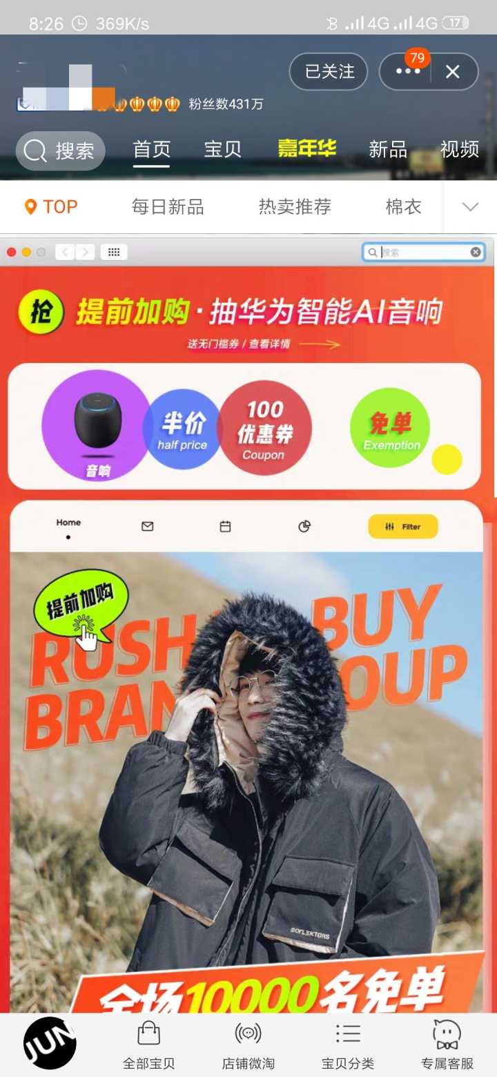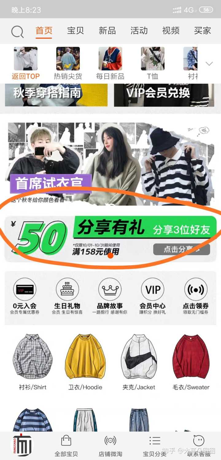首先第一步,进入店铺首页,下拉找到有一个分享3人得158-50券,只要随便发几个人打开下口令就可以了,操作很方便。