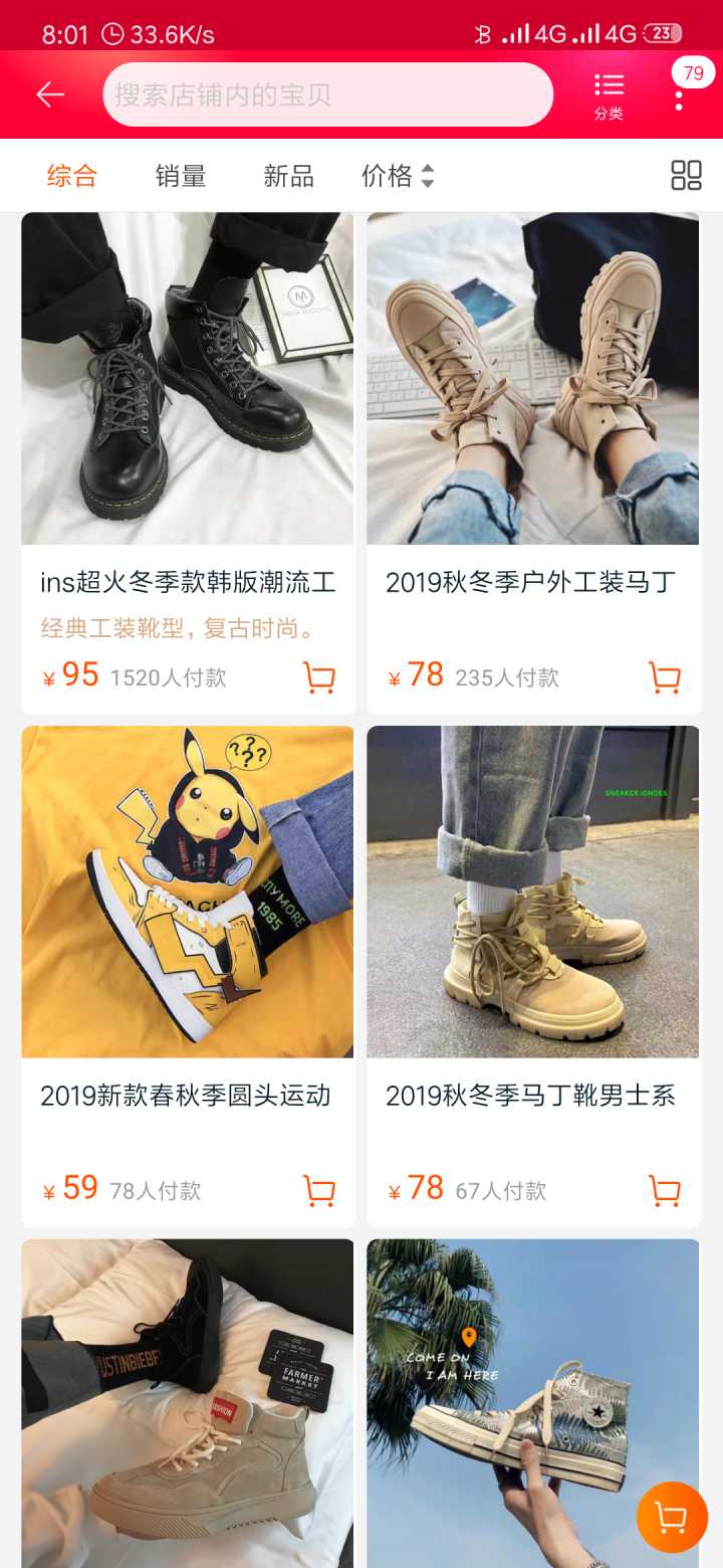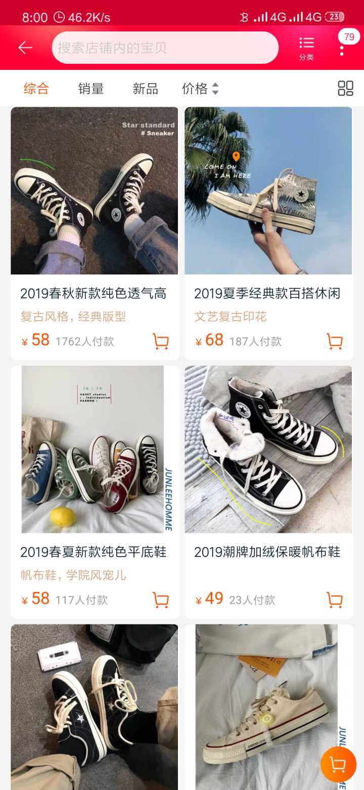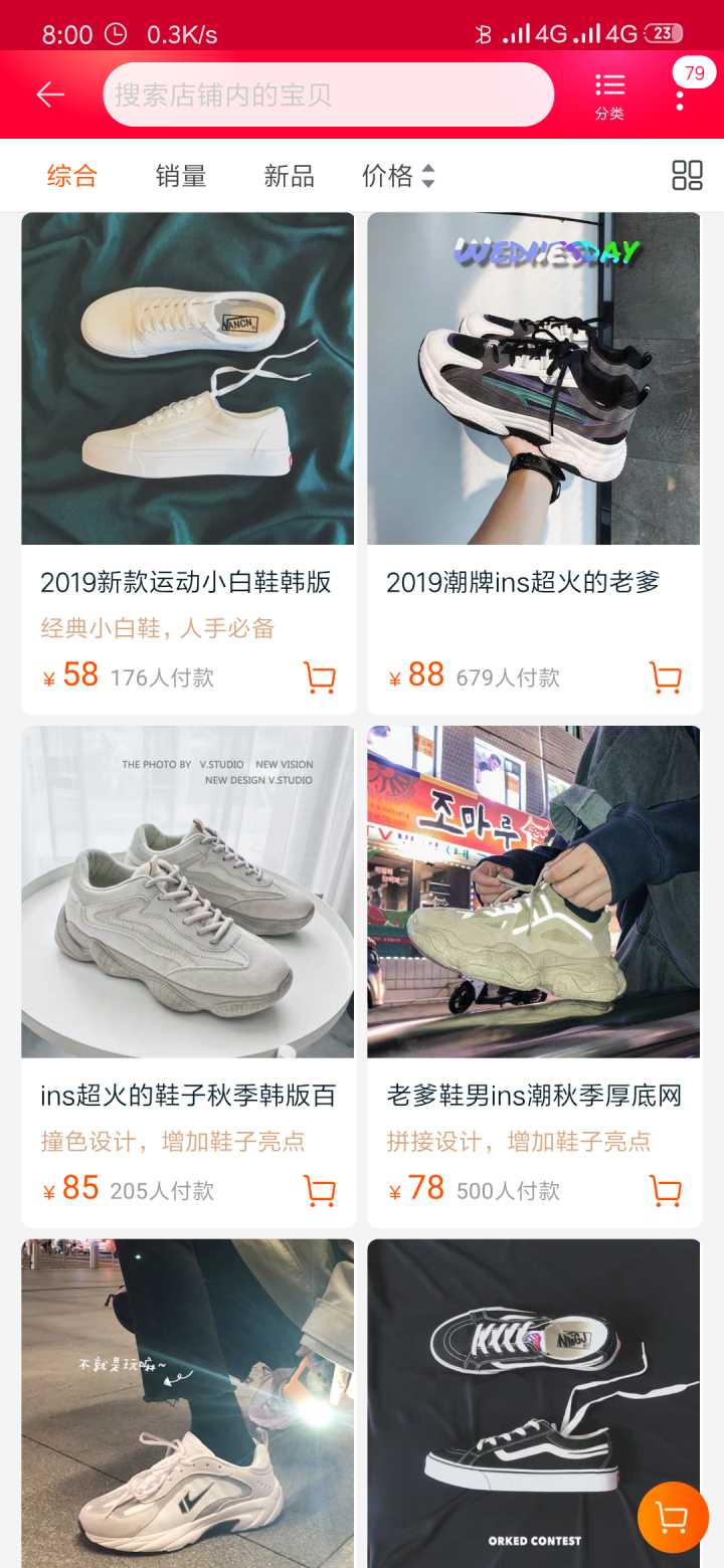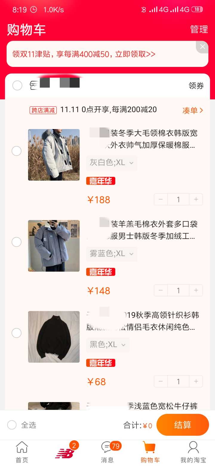 第二步,进入店铺首页新品2件8折专区,去专区找2件宝贝加入购物车,要求价格超过158,如果没有到,就去店铺首页价格排序,拍邮费链接直到158为止,最后的理论价格为158打8折得126.4再叠加158-50券最后价格为76.4,当然实际价格会有所偏差。大概直接图片这样