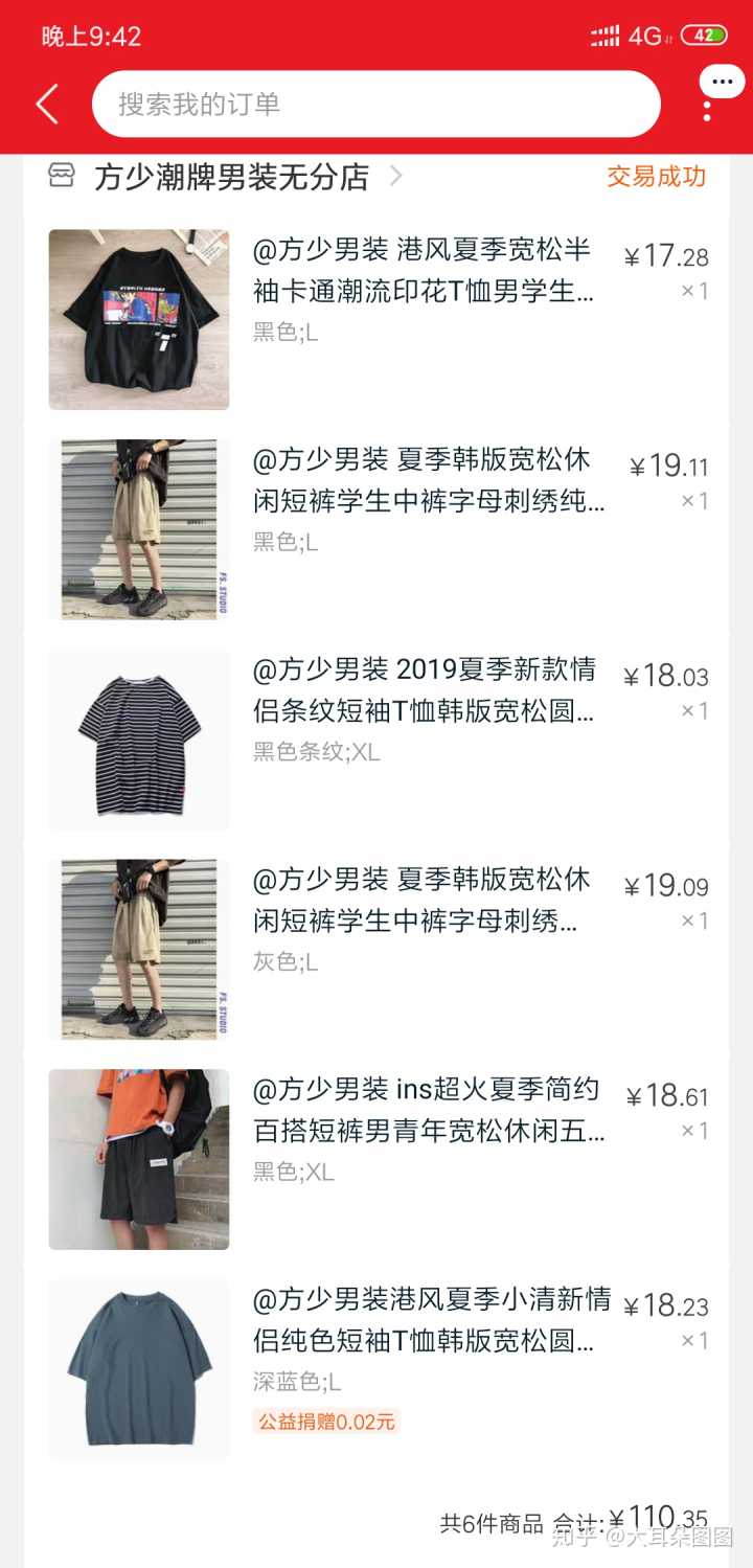 平时店铺大促还会有些买一免一活动,不过是到货返的,下图是618期间的买一免一,买6免3,付款110,到货后又退了将近一半,折算下来不到10块的短裤短袖,款式也多,店铺大售后也有,出问题也不心疼。