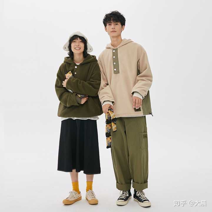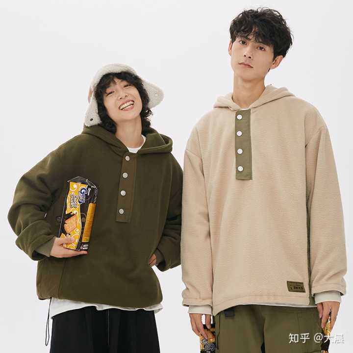 这是一款情侣版的卫衣,但是不过就是卫衣是男款,现在流行中性风和女穿男装的流行趋势,说白了就是一件卫衣。这一款很吸引人的眼球,因为卫衣本身的颜色就很百搭,而且还不是平常的黑白灰,设计亮点我觉得在于领口前的撞色,米色这一款更阳光一些。裤子的搭配的话,我会选择一条裤子来进行搭配。