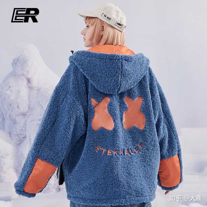 江南先生原创19秋冬新 日系拼接摇粒绒卫衣男女宽松情侣连帽外套