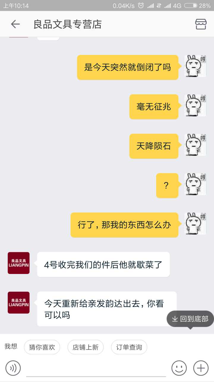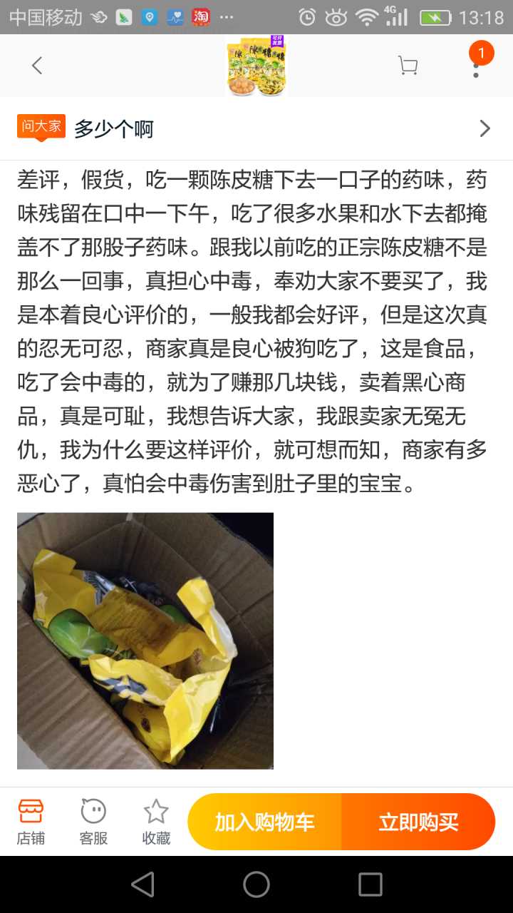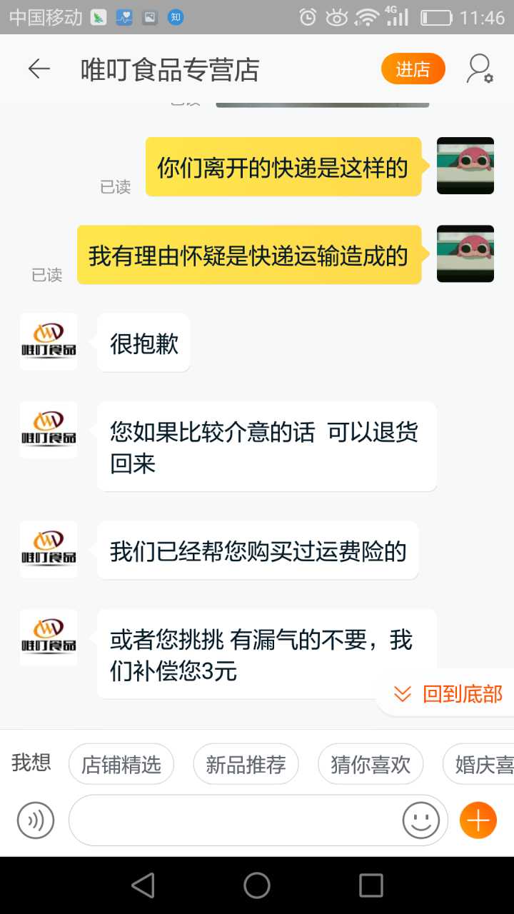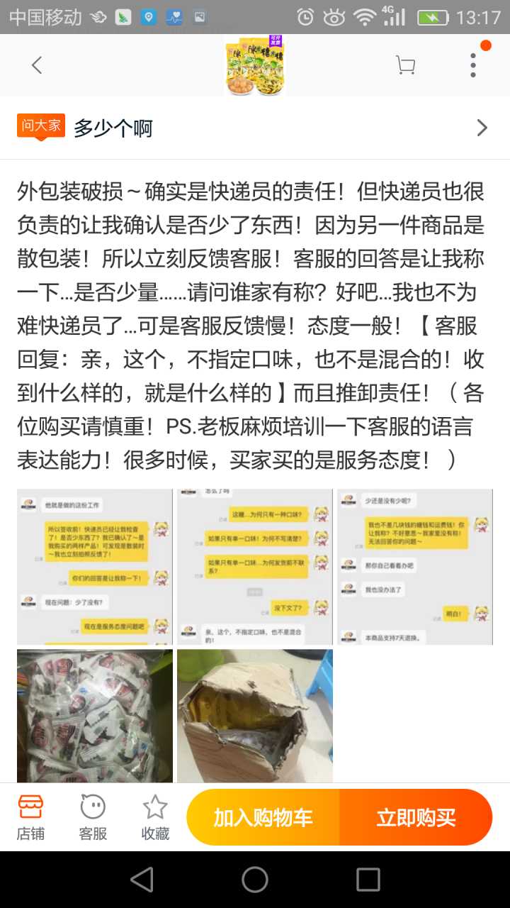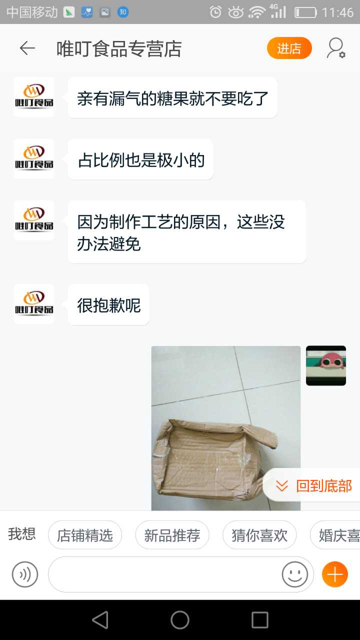 我一般收到不好的产品,要么退货要么和卖家协商解决。因为这包糖我已经拆封了,退货是不可能的,所以我去询问了客服,希望他给我个说法。其实如果客服能安抚下我的情绪,这事也就过去了,关键是,我遇到了一个奇葩客服!!