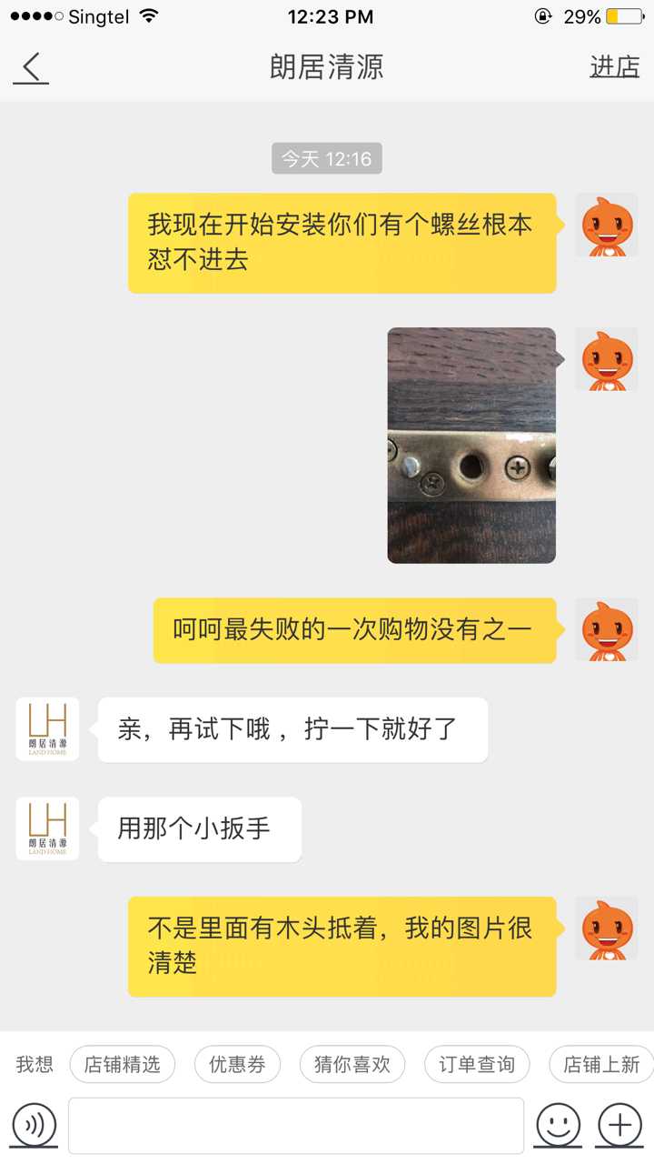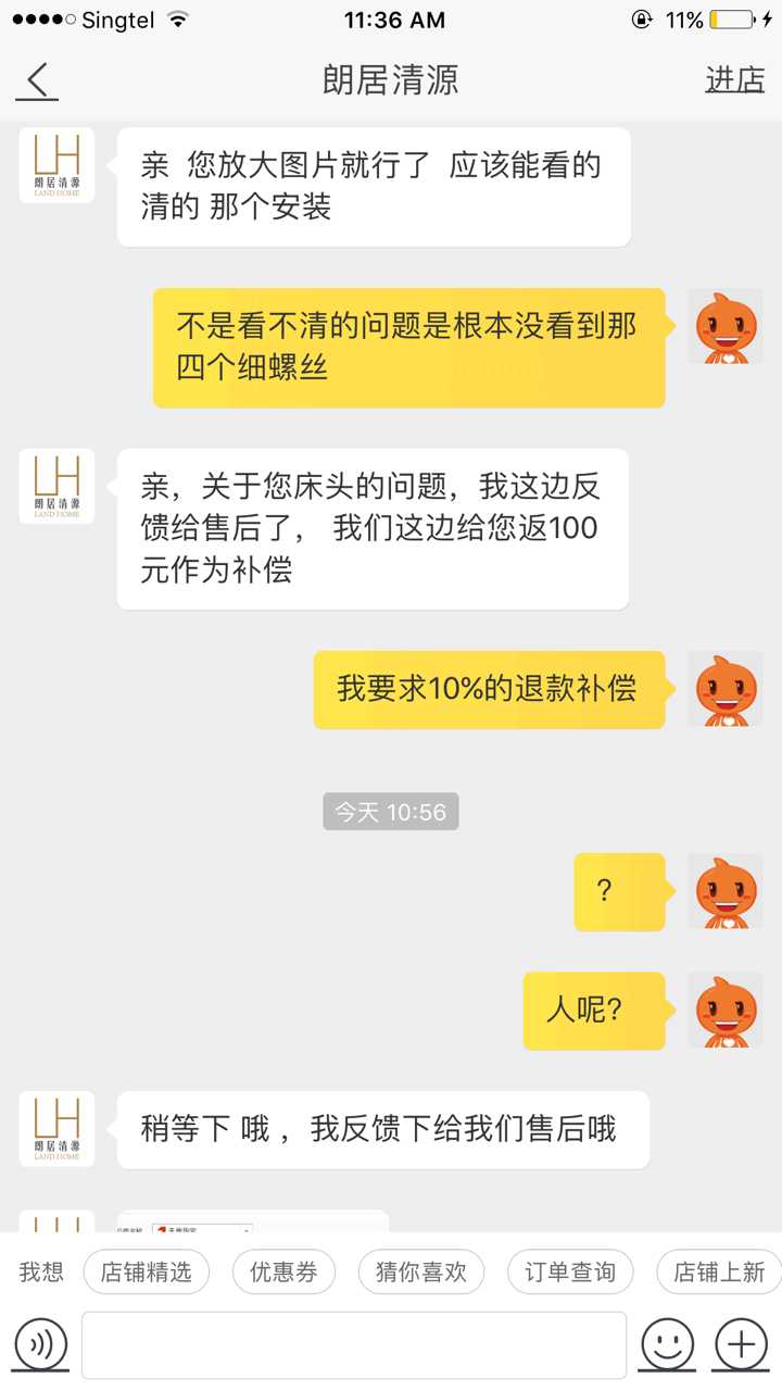 所以遇到这种售后服务,真的是非常糟糕。我搬新家买新床遇上这么糟心的事就意味着我会死磕到底。我关注了他们半年多,在淘宝上选了1个月的床最后才选了他家的东西结果是现在这个样子真的心凉。