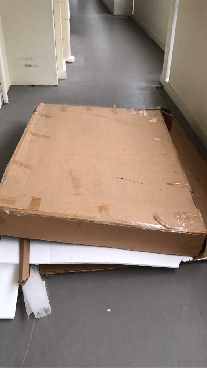 这么无耻我还能说什么呢……你家一共两箱!一箱立起来比我还高,另一箱宽到我下巴(我167),长有一个半我高还巨重,你让我开箱检查完再签?呵呵。更不要说的是转运仓,人家快递根本不会等你。这就是我说拆箱检查不现实的箱子,这是所有东西都装好了准备扔到垃圾桶的照片。