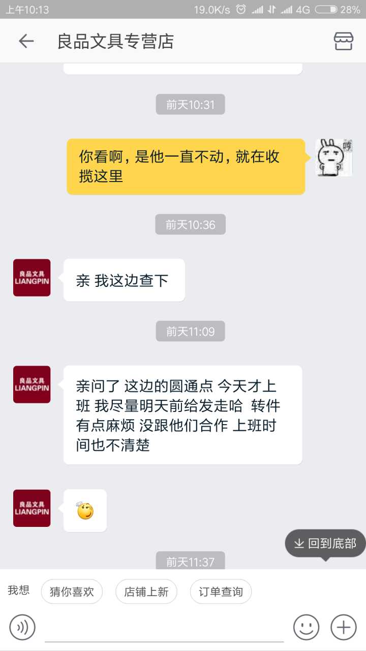 然后他们收到货了之后很久不给我发货,催了好几次,客服都说“我跟店主说说”、“我催催店主”。我寄回的钱包都到了半个月了才给我发货。