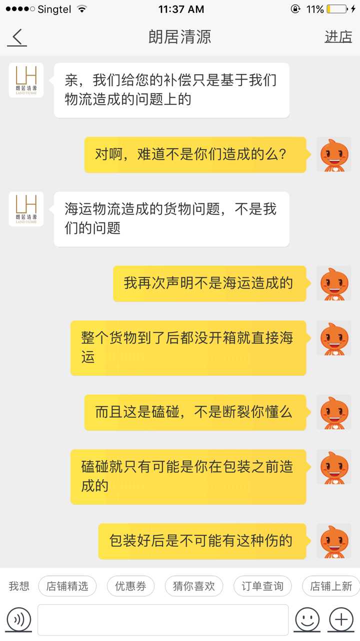 所以我要求提供带日期的质检视频你们拿不出来,从头到尾都怪海运,那请问我同一批次甚至只有纸箱包装的整装椅子为什么没事?你的意思是你家东西差海运这么平稳的物流都能出问题?常听店大欺客没想到啊,这态度我这暴脾气还真受不了。老板,瑕疵款卖正品价,生意不是这么做得。这节课我吃下了,感谢赐教。