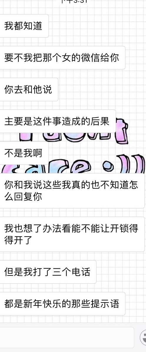 换句话说,就算是你朋友把仓库钥匙拿走了,那这也是你推卸责任的理由吗?既然要出来做生意麻烦端正你自己的态度,把拿来练嘴炮和跟人撕的功夫和本事用来提升自己的业务水平。最让人无语的是卖家包括她的朋友还一直来加好友,语气也不是太好,总觉得我在无缘无故的骂他们,需要把完整的聊天记录贴出来看一下是谁骂谁吗?