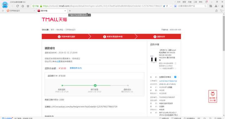 不满,想给中评,发现卖家已悄然同意收货,退款完成。