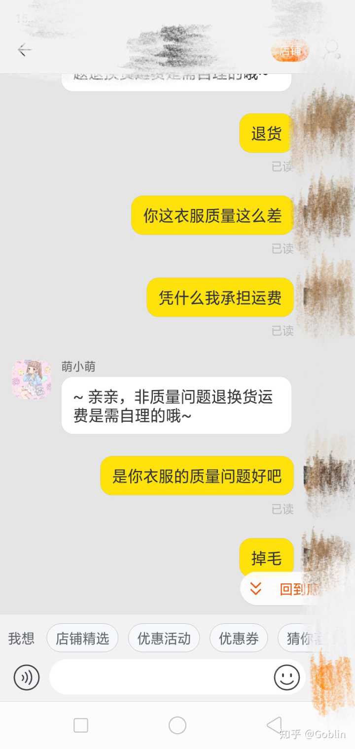 然后联系卖家,客服小姐姐也是很优秀,让我无比生气,不包我退货运费,然后我就把他店投诉了,再然后店主给我打电话道歉,说包运费给我退,让我删一下图片。