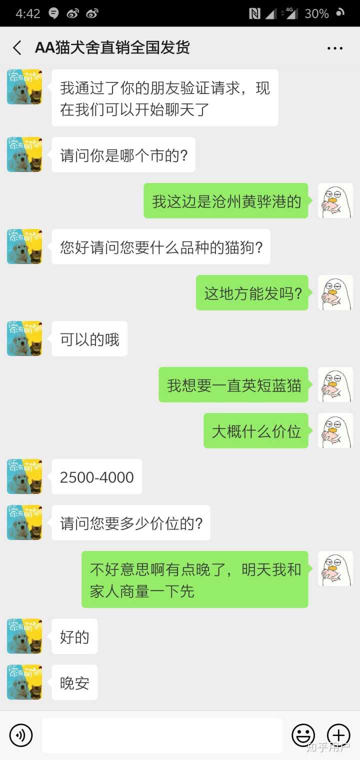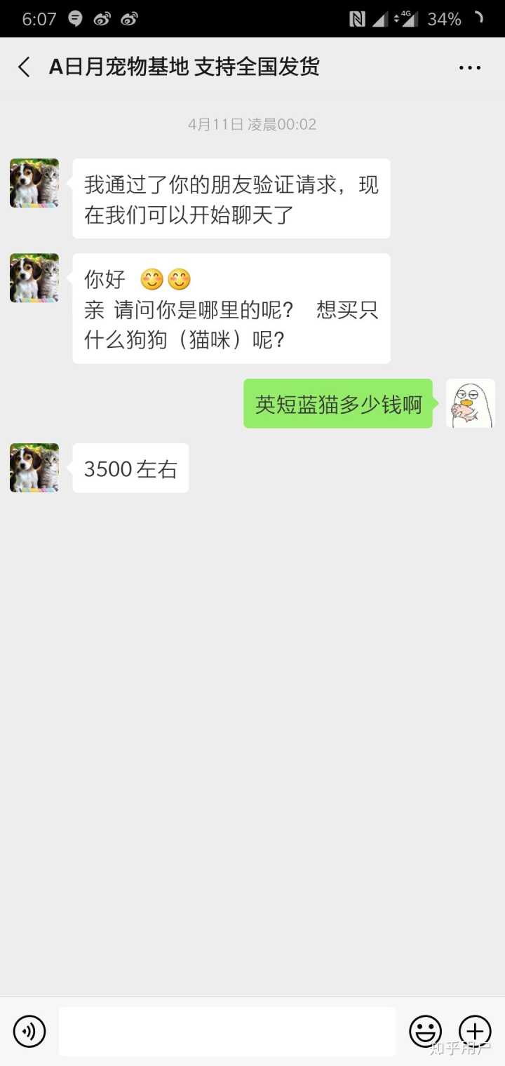 晚上十点多通过同事加了这个犬舍主人的微信,当时他给我推荐了一些猫,有一只很可爱,我问多少钱他说2000,我说超出了我的预算,之后就睡觉了。