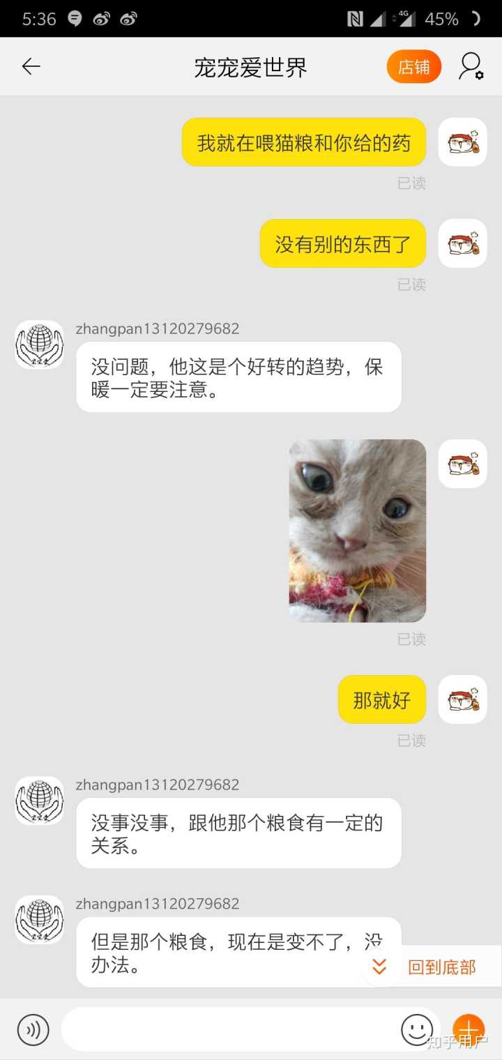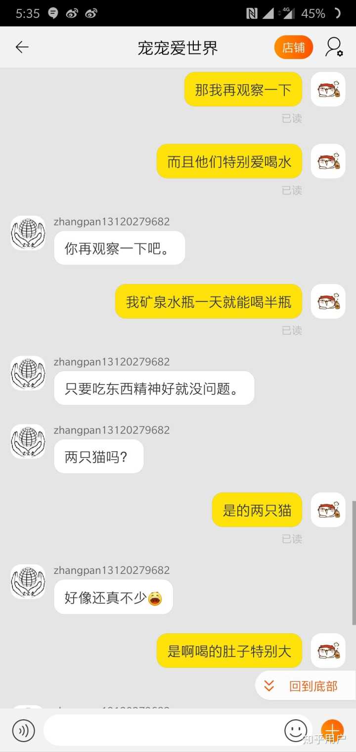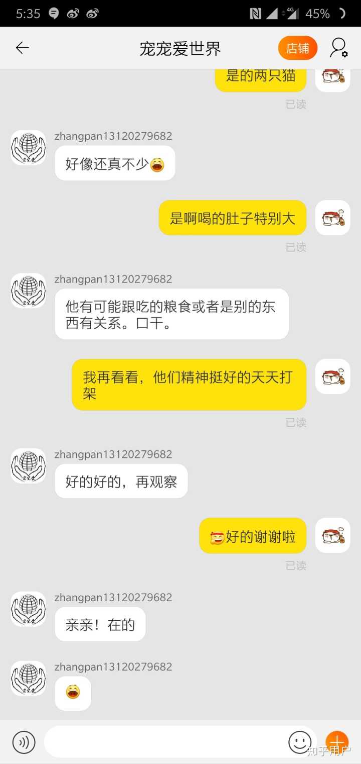 先开始的时候我觉得这个淘宝卖家太殷勤了,吝啬的我觉得他就是在给我软性推销东西,但是我的猫确实出现了问题,我决定先听听她说的话