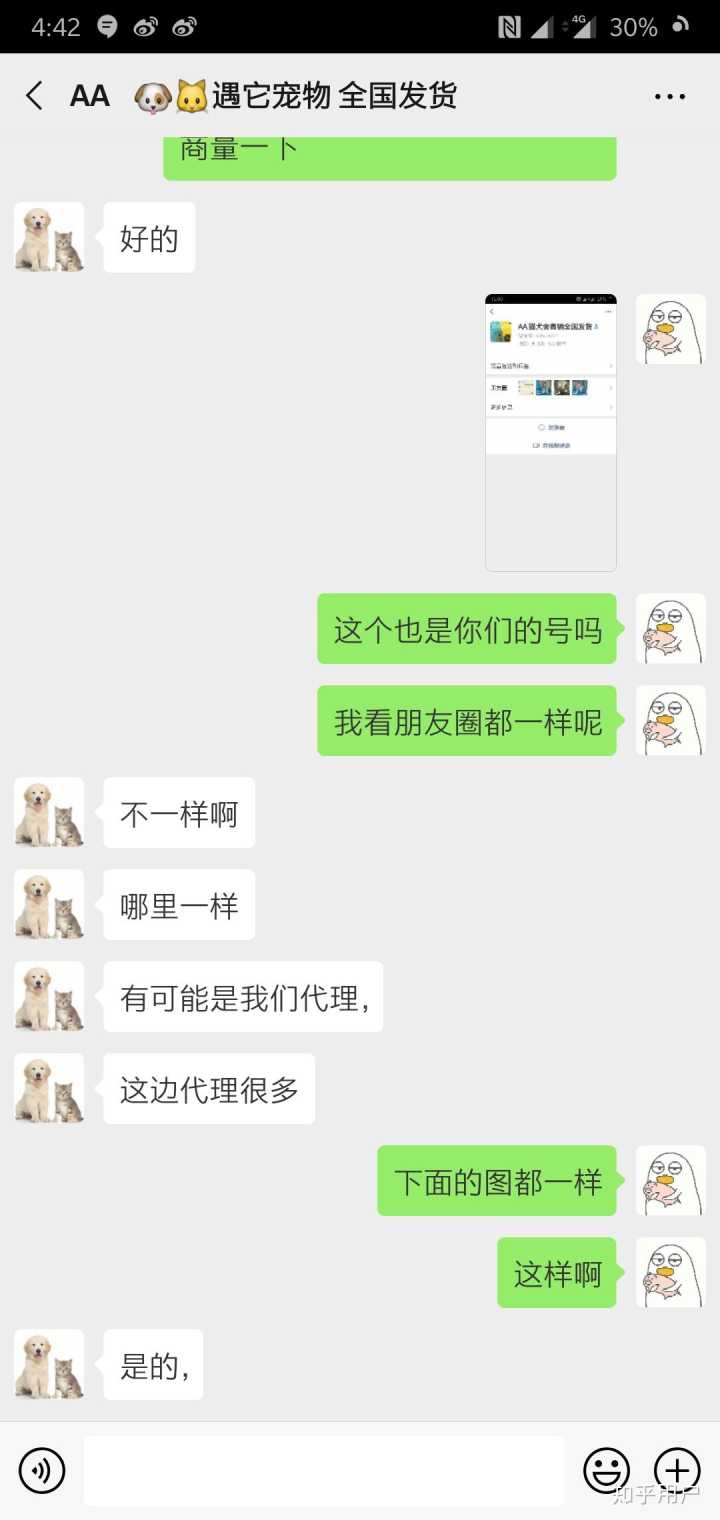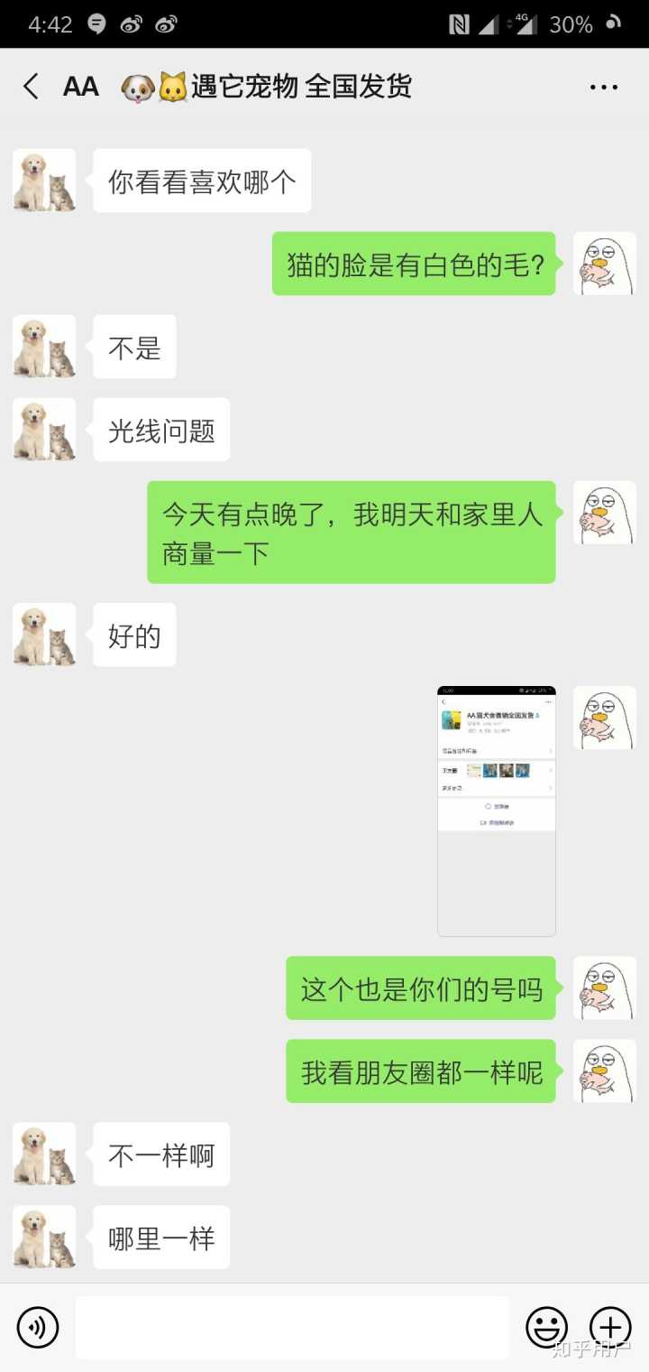 除了名字不一样哪都一样,其实这个时候我只是觉得这个1800包邮的也是个代理卖家,完全没觉得对方是骗子,至于我为什么没买他家的,因为,我觉得比我第一次问的贵了300,我想买个1500包邮到家的_(:з」∠)_后来看到知乎上很多曝光微信卖猫是诈骗的!!!真是贫穷救了我!!!顺便一提还有一个要3500的,朋友圈和他们也一样,反正看到这价我就溜了。。。