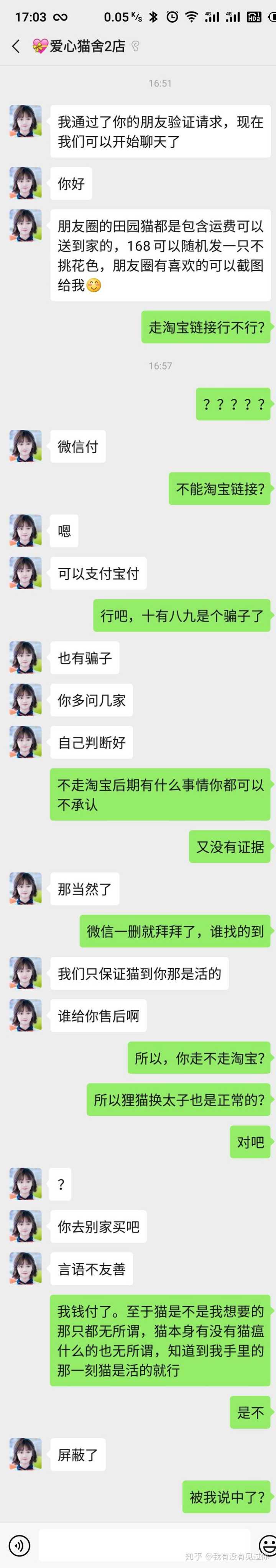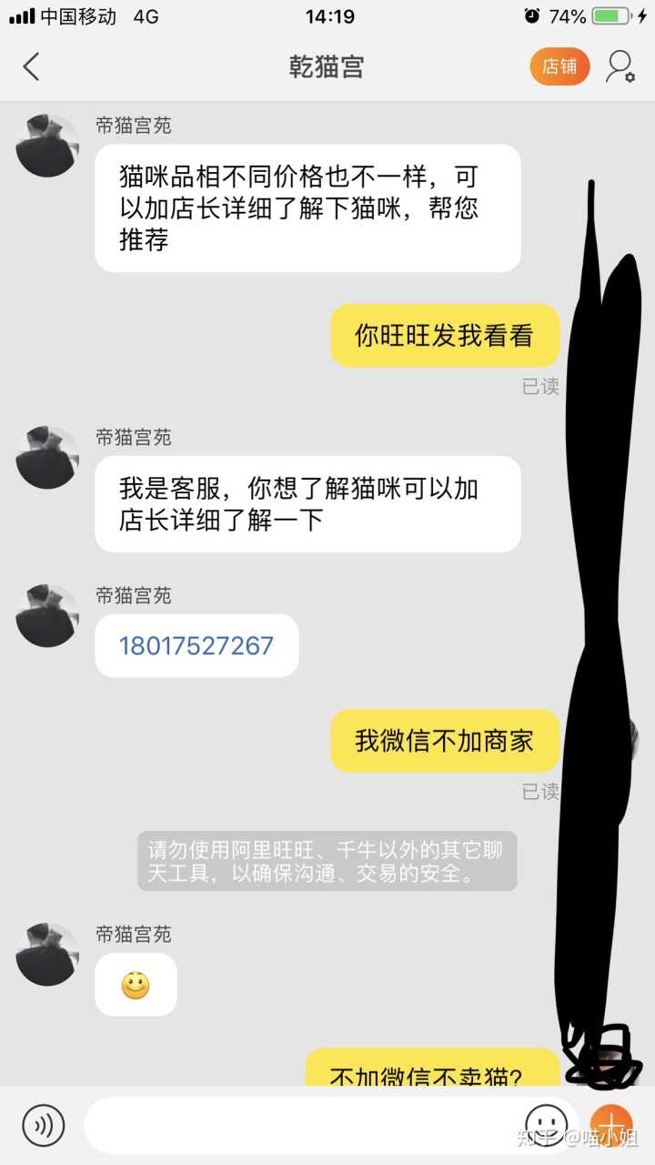并且想说我给猫咪看病是应该的,但是不能因为我愿意去带他看病,就代表我就能够默认商家的无良行为,我不想助长这些人的气焰,更不想吃个哑巴亏,这种讲 不能保证寄给我们就会活这种话的畜生就该被曝光。后面估计店家已经拉黑了我,已经不回复,电话也被拉黑了,打过去在通话中。